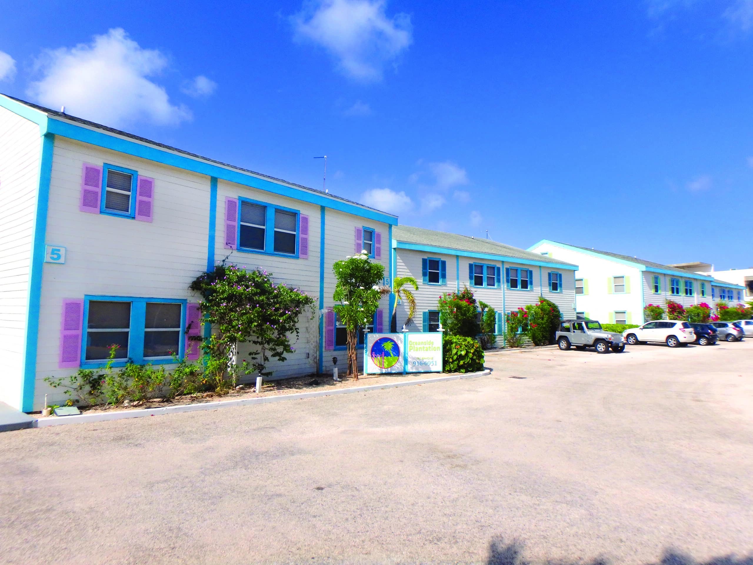 Oceanside Plantation is an oceanfront residential development serving both residents and visitors on North West Point Road in West Bay. Designed in traditional Caymanian style, the development consists of five buildings offering a mix of one- and two-bedroom units, some with additional loft spaces.